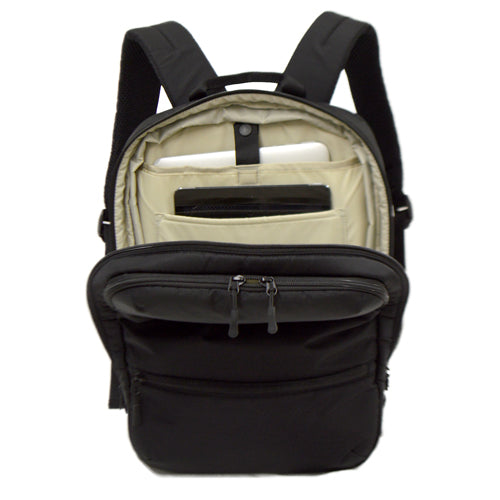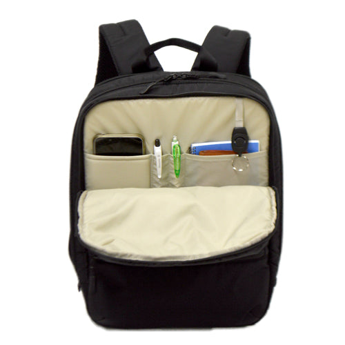 【拡張】 「8リットル(通常使用時)」から「13リットル(拡張時)」へ、容量が約162%となるエキスパンダブル仕様。                                                 【A4サイズ】 A4ファイルがすっきり収まるビジネスデイパックです。                                                                                                                                                                          【軽量】 わずか650gと軽量ですが、自立しやすい構造になっています。
