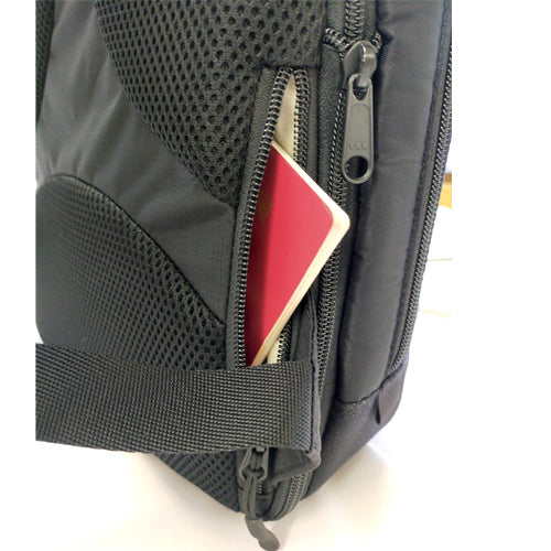 また、セキュリティ性の高いパスポートサイズのファスナーポケットも付いています。
