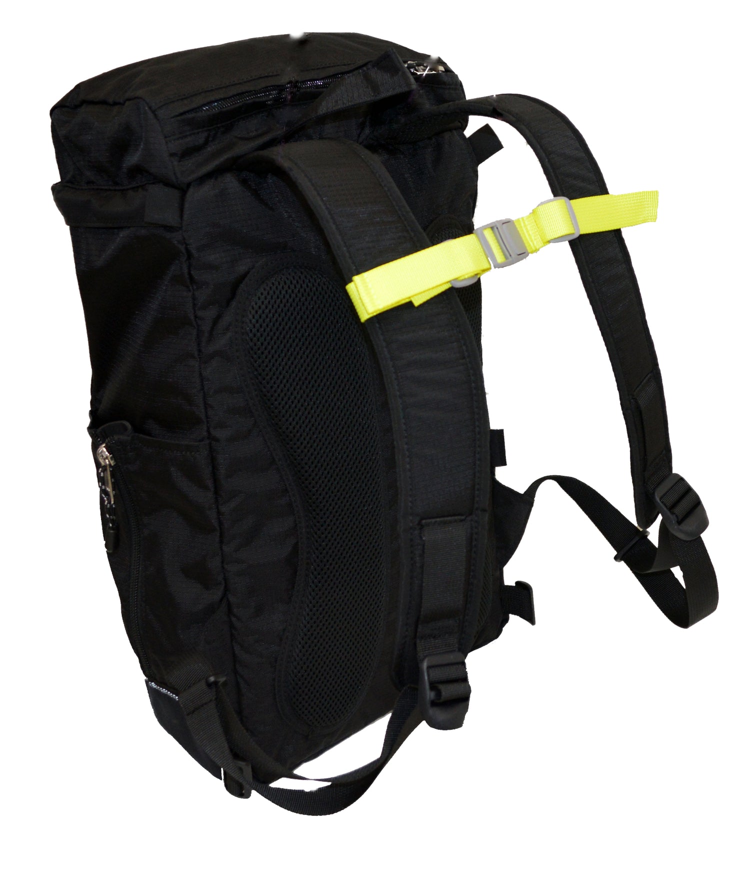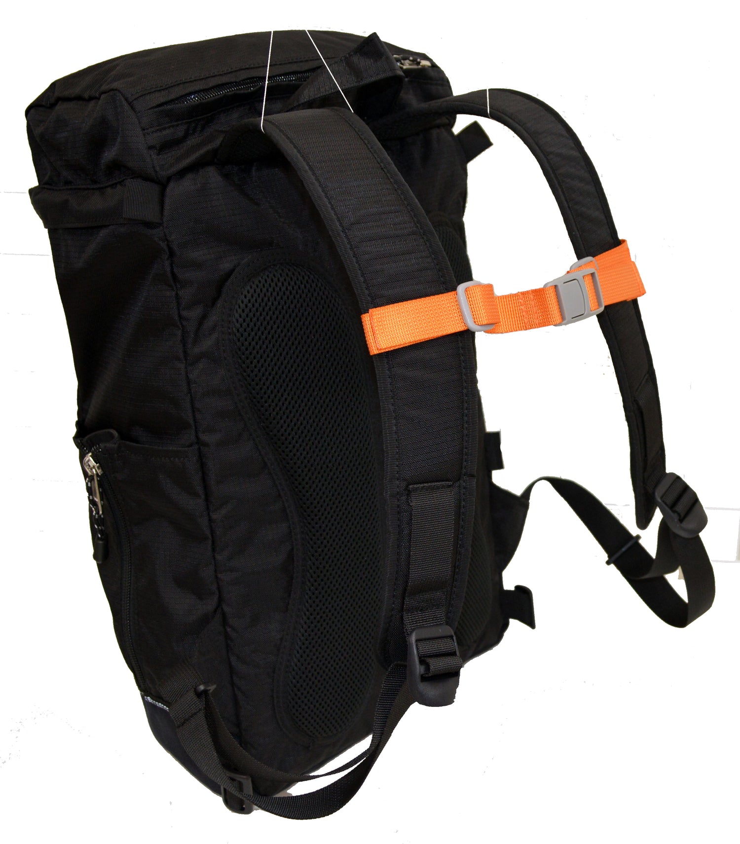 Attach it to the straps of your backpack and hold it in front of your chest.