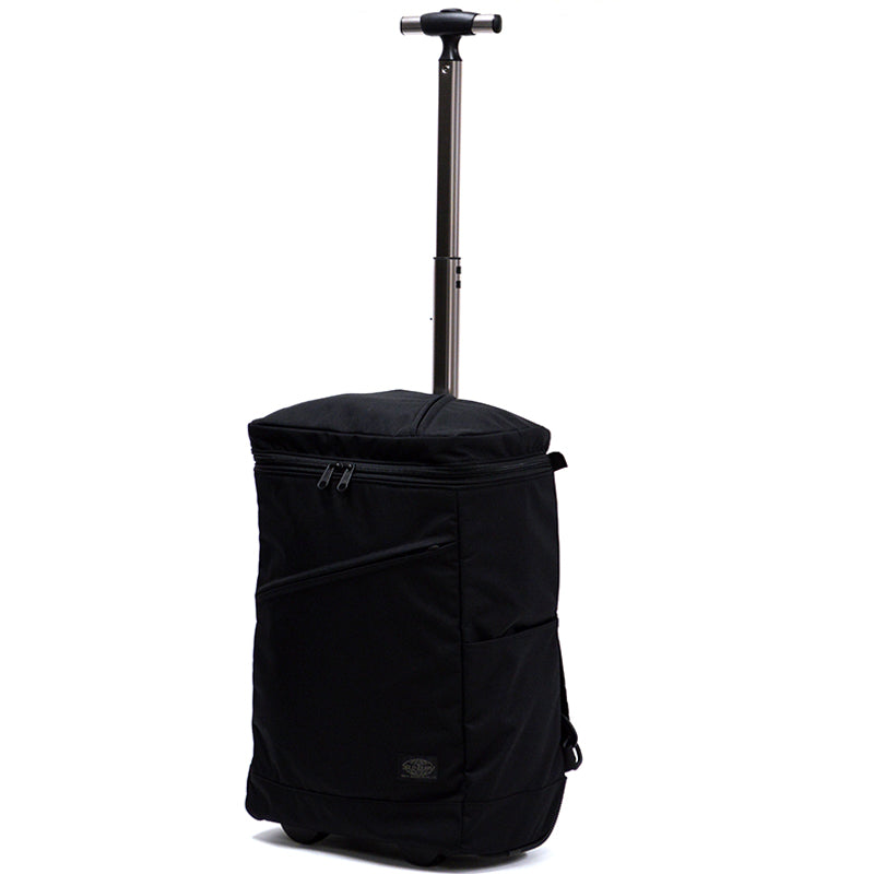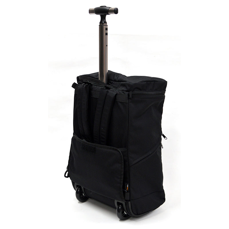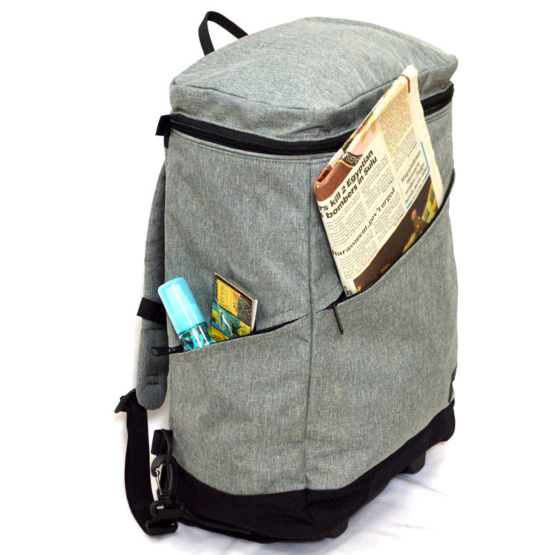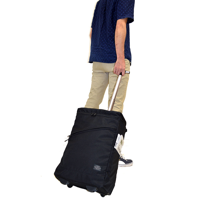 There is a flap on the back to prevent dirt from getting on your clothes when you carry the bag on your back. The flap is large, so it also prevents dirt from the wheels from getting on your clothes when you carry the bag on your lap on a train or bus.
