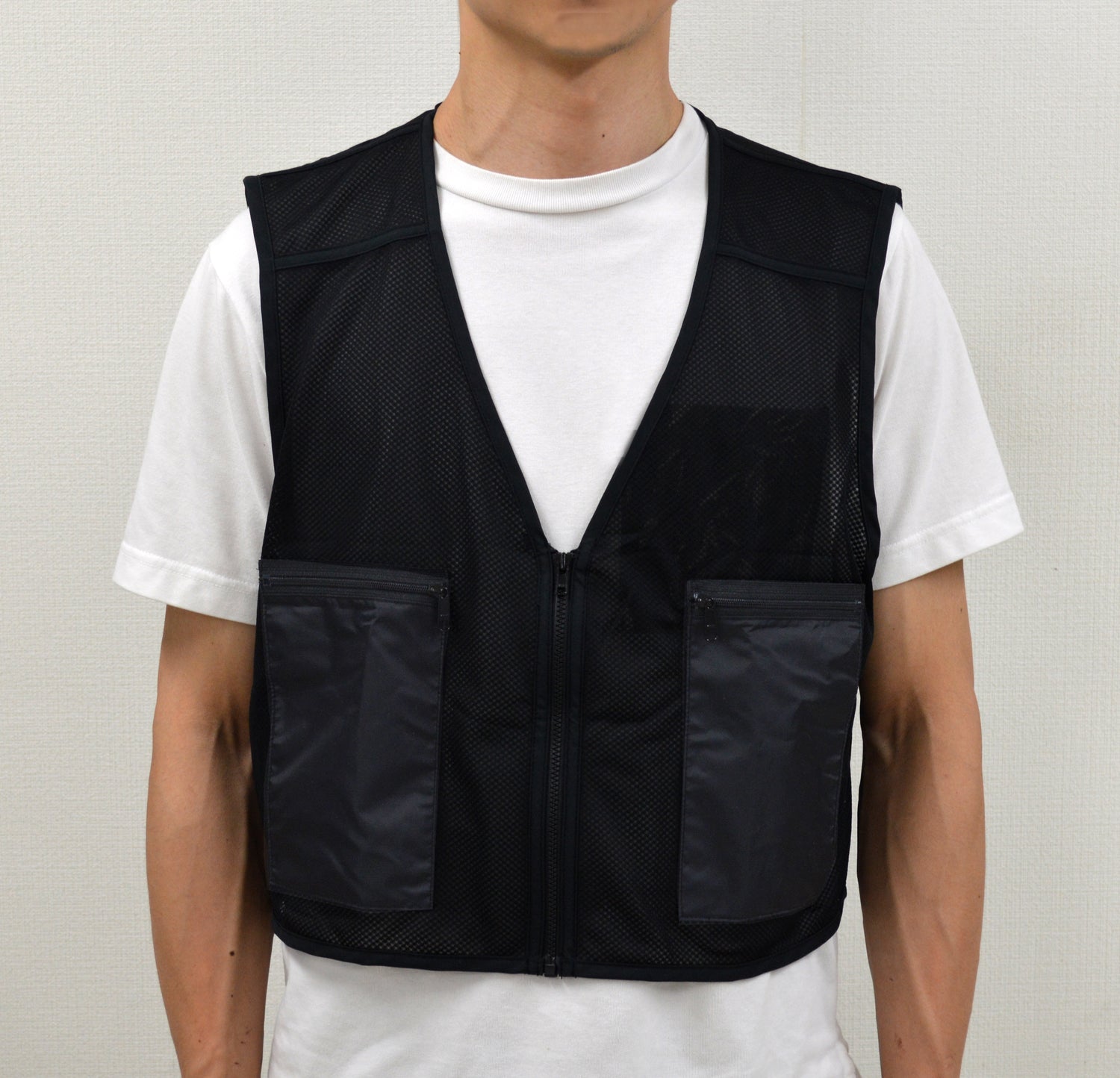 There are two zippered pockets on the chest. The left pocket is double-layered, with a zippered front pocket and a non-zippered rear pocket. The non-zippered pocket is convenient for storing long tickets. (Other features) Materials and sewing such as fabric are made in Japan. ☆ Evaporative mesh fabric.