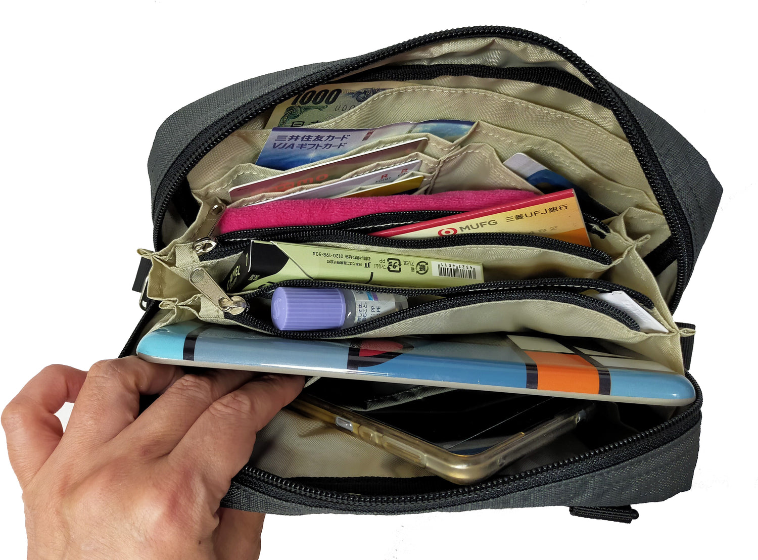 This is a 4-way multi-shoulder bag that allows you to instantly separate bills and coins.