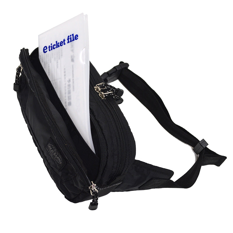 The e-ticket storage pocket is located in an easy-to-reach location.