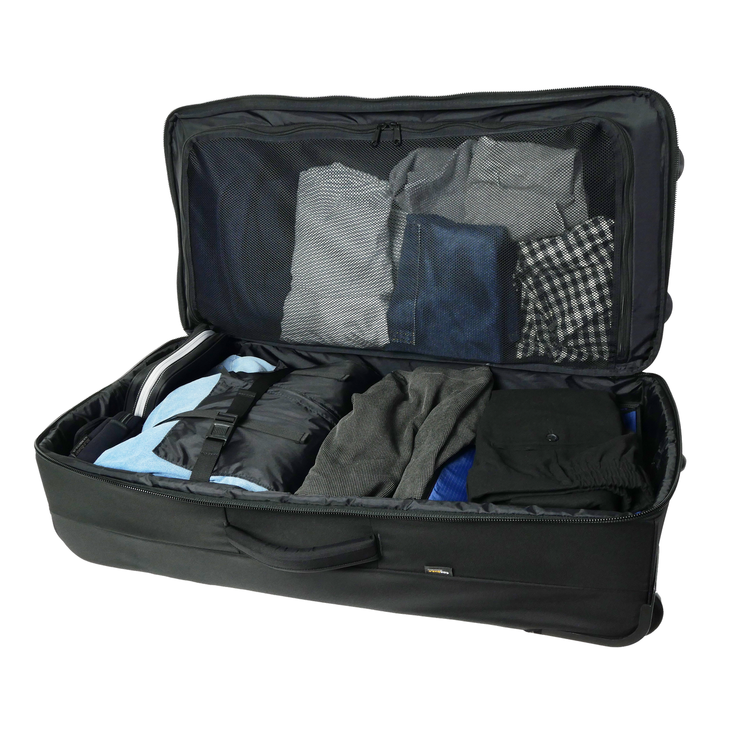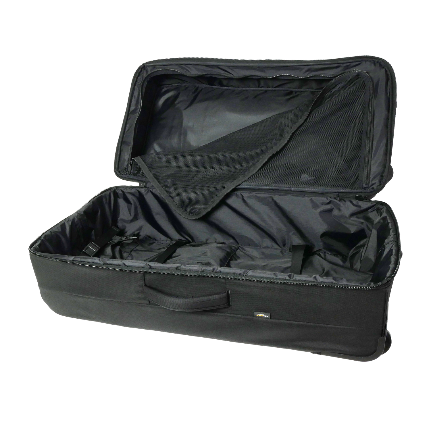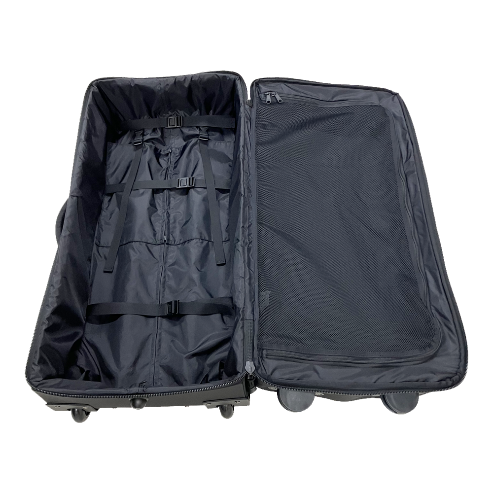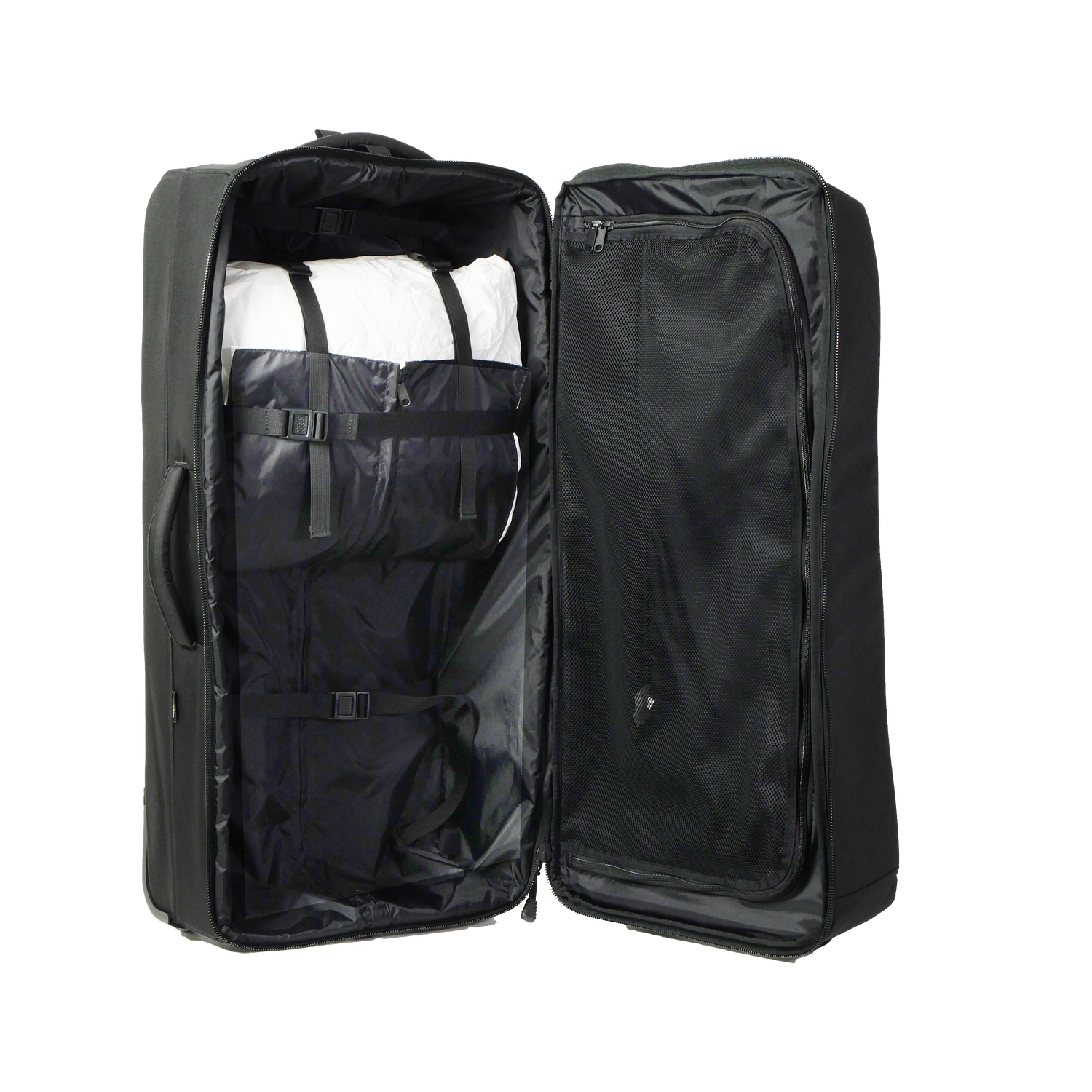 • 大容量設計: 約80リットルの収納力を備え、縦長サイズで新幹線や飛行機内の通路でもスムーズに移動可能